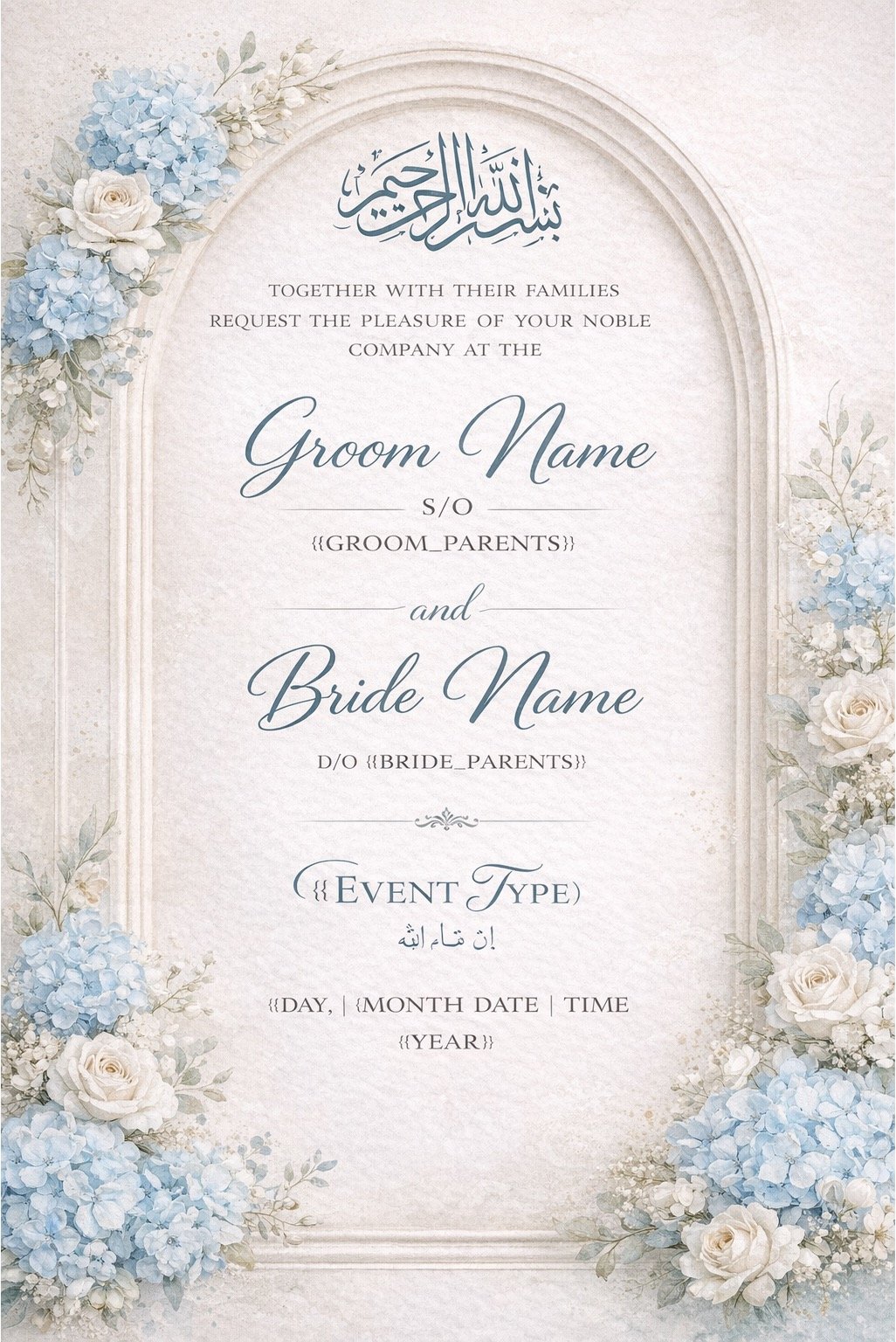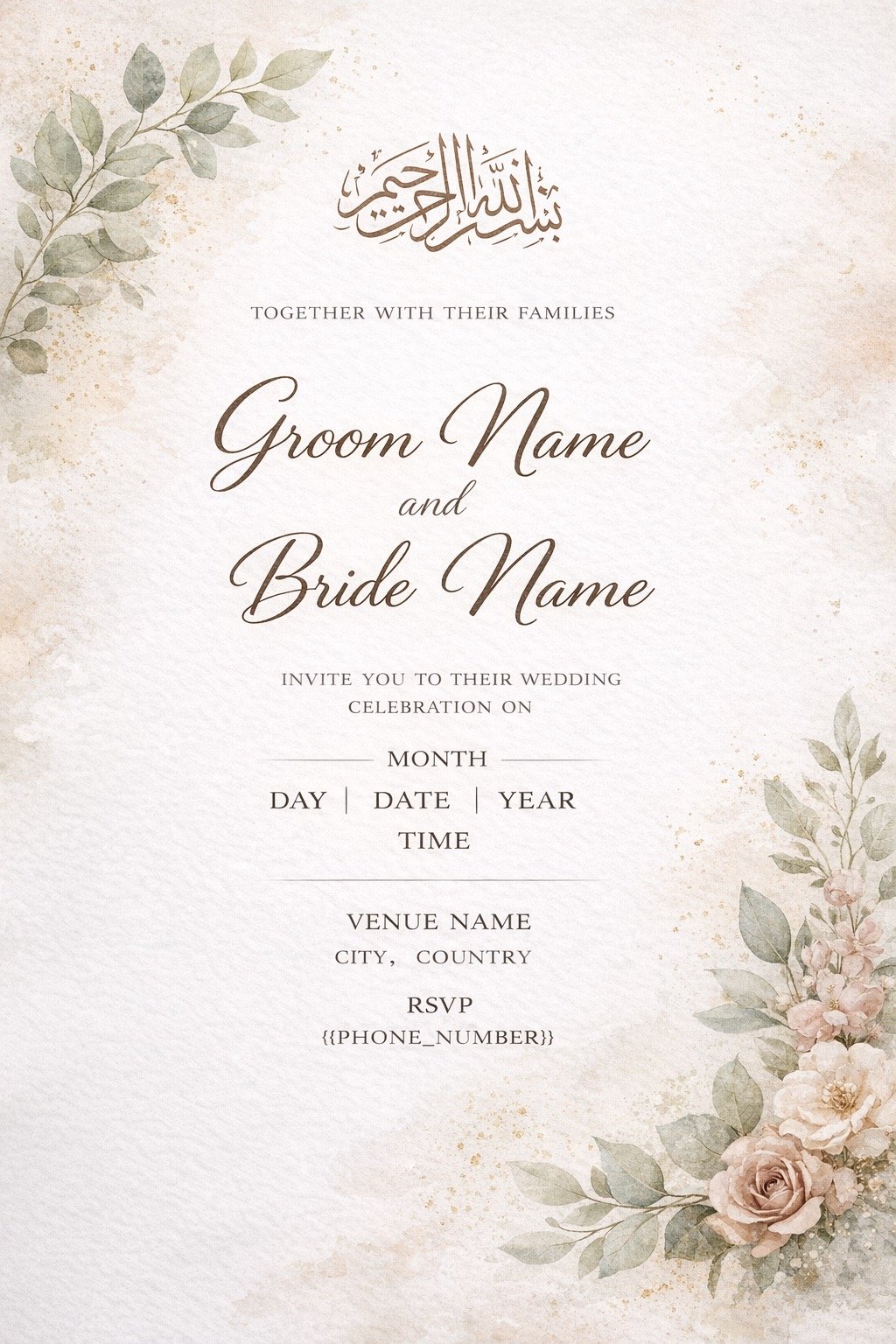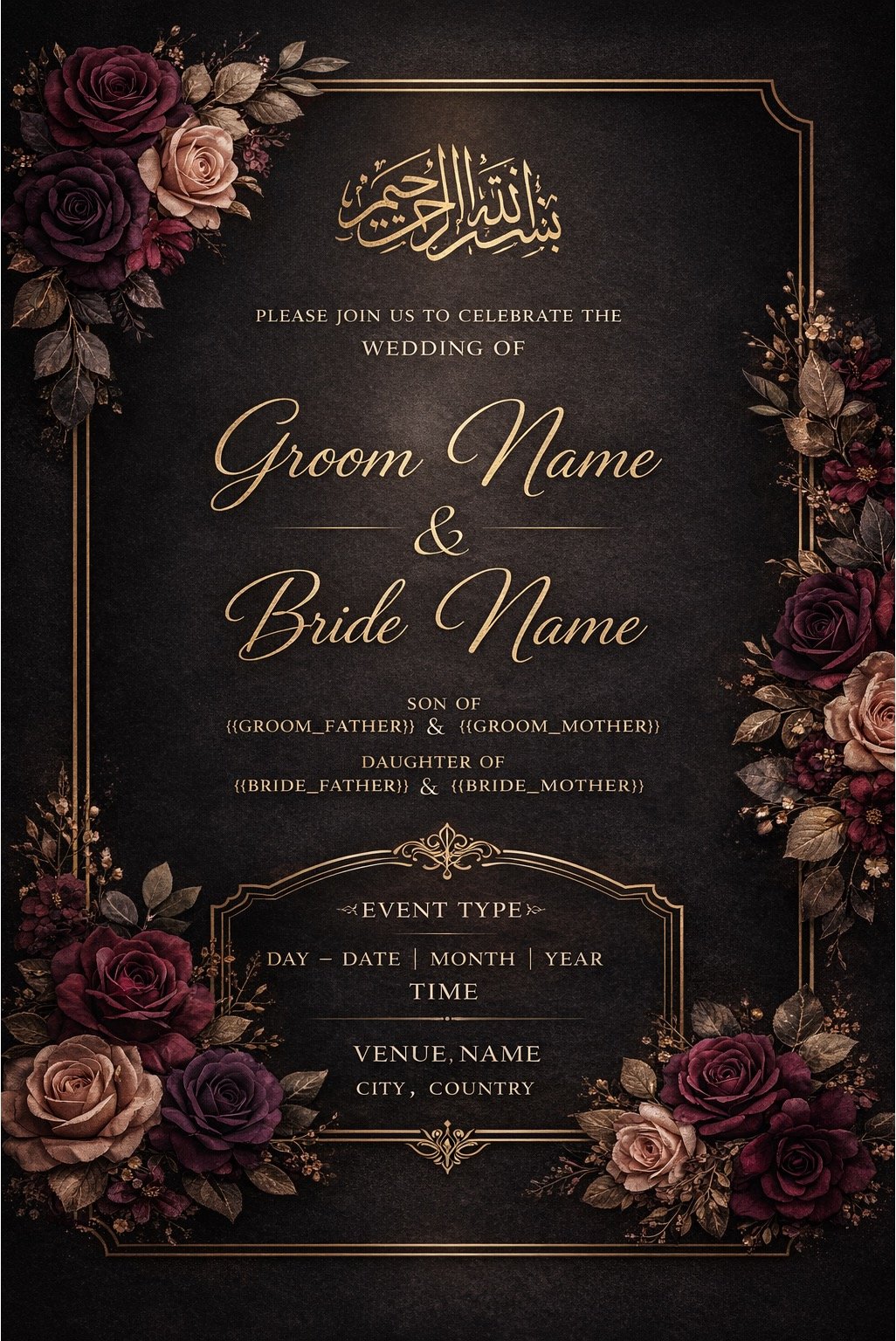 👉 Generates high-end Muslim wedding and Nikah card designs with Islamic aesthetics.